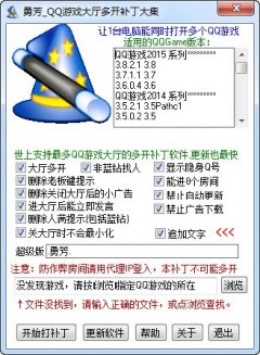 勇芳qq游戏大厅多开补丁免费版下载2017 360安全家园网站提供勇芳qq游戏大厅多开补丁免费版下载2017最新版下载安装。这是勇芳制作的QQ游戏大厅多开补丁;通常QQ游戏在一台电脑中,只能用一个QQ号开一个QQ游戏,用了本软件后,就能用很多QQ号在一台电脑中开很多...