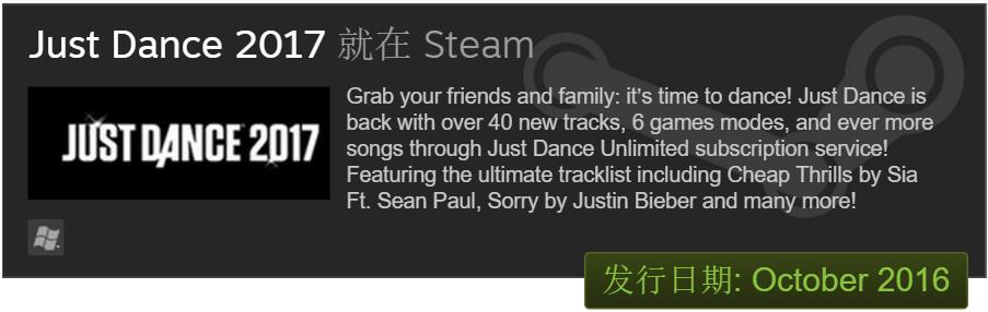 《舞力全开2017》将登录PS4、Xbox One、PS3、Xbox 360、Wii U、NX和PC平台,2016年10月发售。
