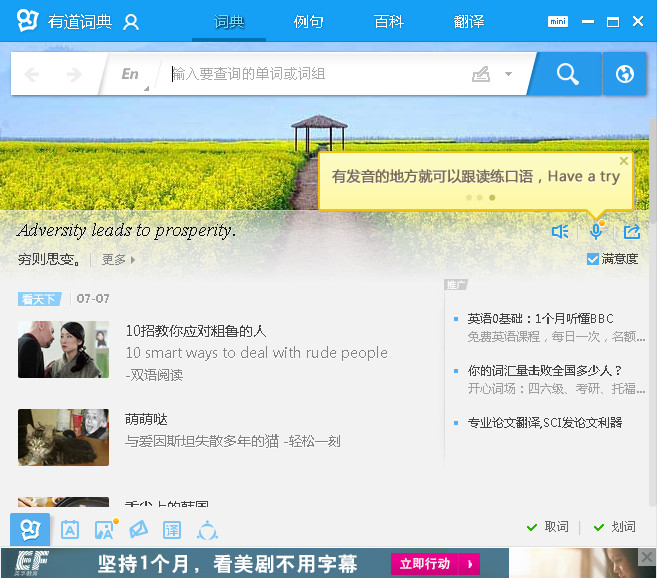 360安全之家网站提供有道词典官方下载2017电脑版下载安装。有道词典2017电脑版是由网易有道出品的一款很小很强大的翻译软件。这款软件完整收录了多部权威性专业辞典,而且还具备多国语言发音功能哦~有需要的朋友赶快下载用用看吧!