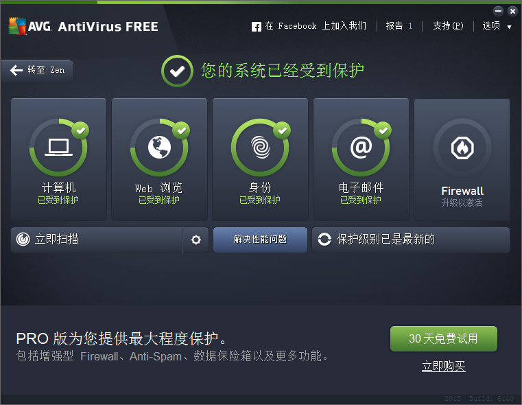 3. 此时可选择提供完整功能但有时间限制的AVG Internet Security 试用版。