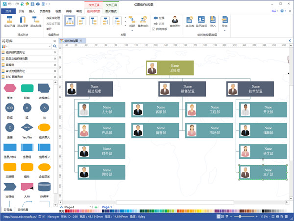 软件新颖小巧、功能强大,能完美地替代Visio软件,备受企业管理人士的青睐.亿图组织结构图官方试用版界面与微软Office界面相仿,使用方便;