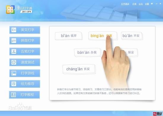 360安全之家网站提供2017金山打字通官方免费下载安装。金山打字通2017是金山公司推出的两款教育系列软件之一,是一款功能齐全、数据丰富、界面友好的、集打字练习和测试于一体的打字软件。 它是一款集打字练习与测试等功能于一体的应用,由简单到复杂,让你完美突破盲打障碍,短时间内运指如飞。这么好的练习软件,赶快下载体验吧!