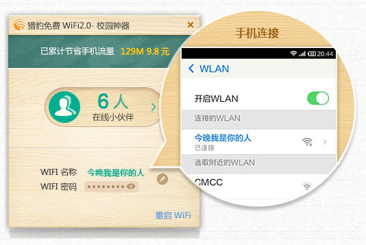 无需购买任何硬件,从头到尾不用掏1分钱;永久免费,是猎豹免费WiFi始终坚守的承诺。